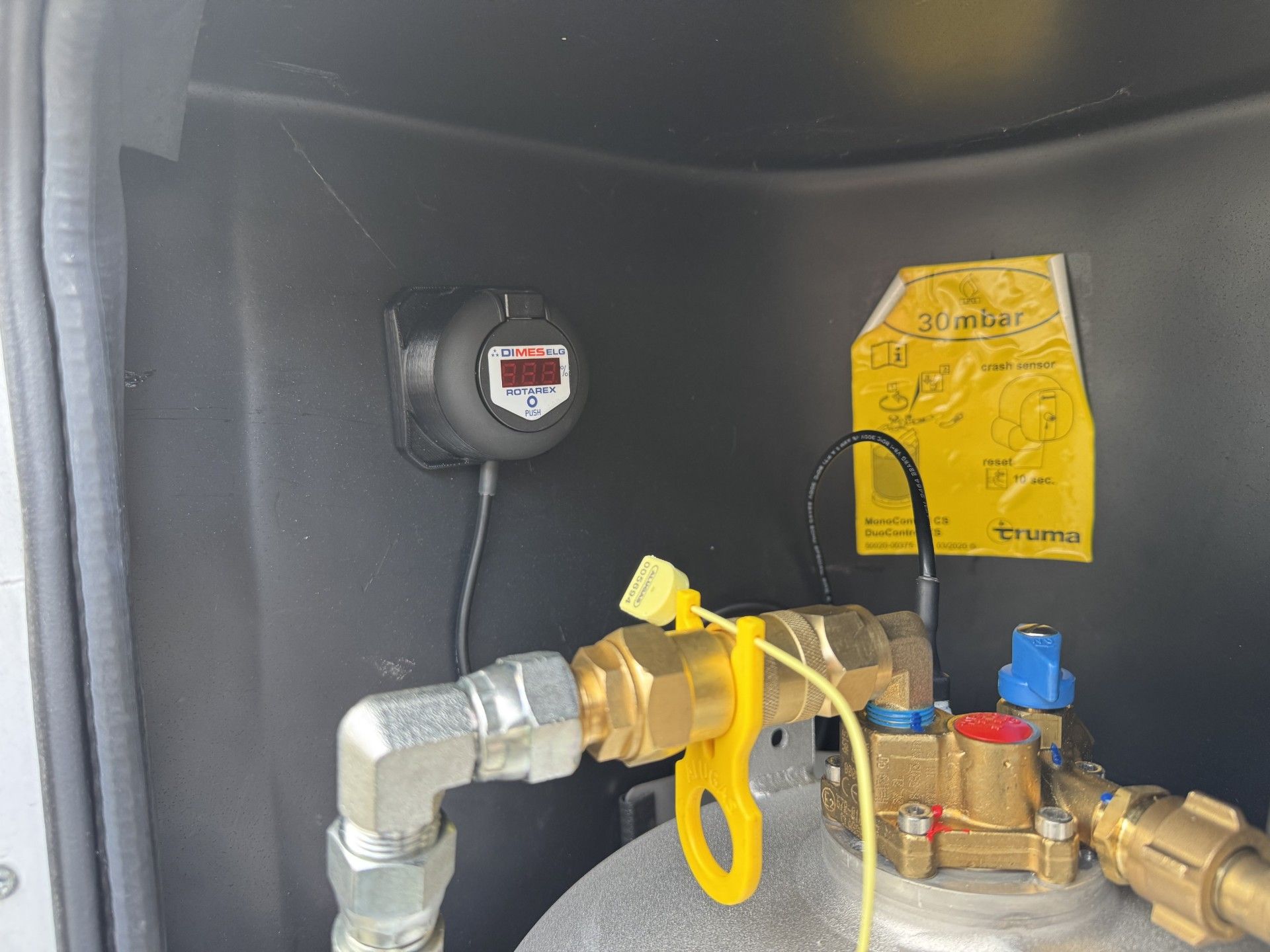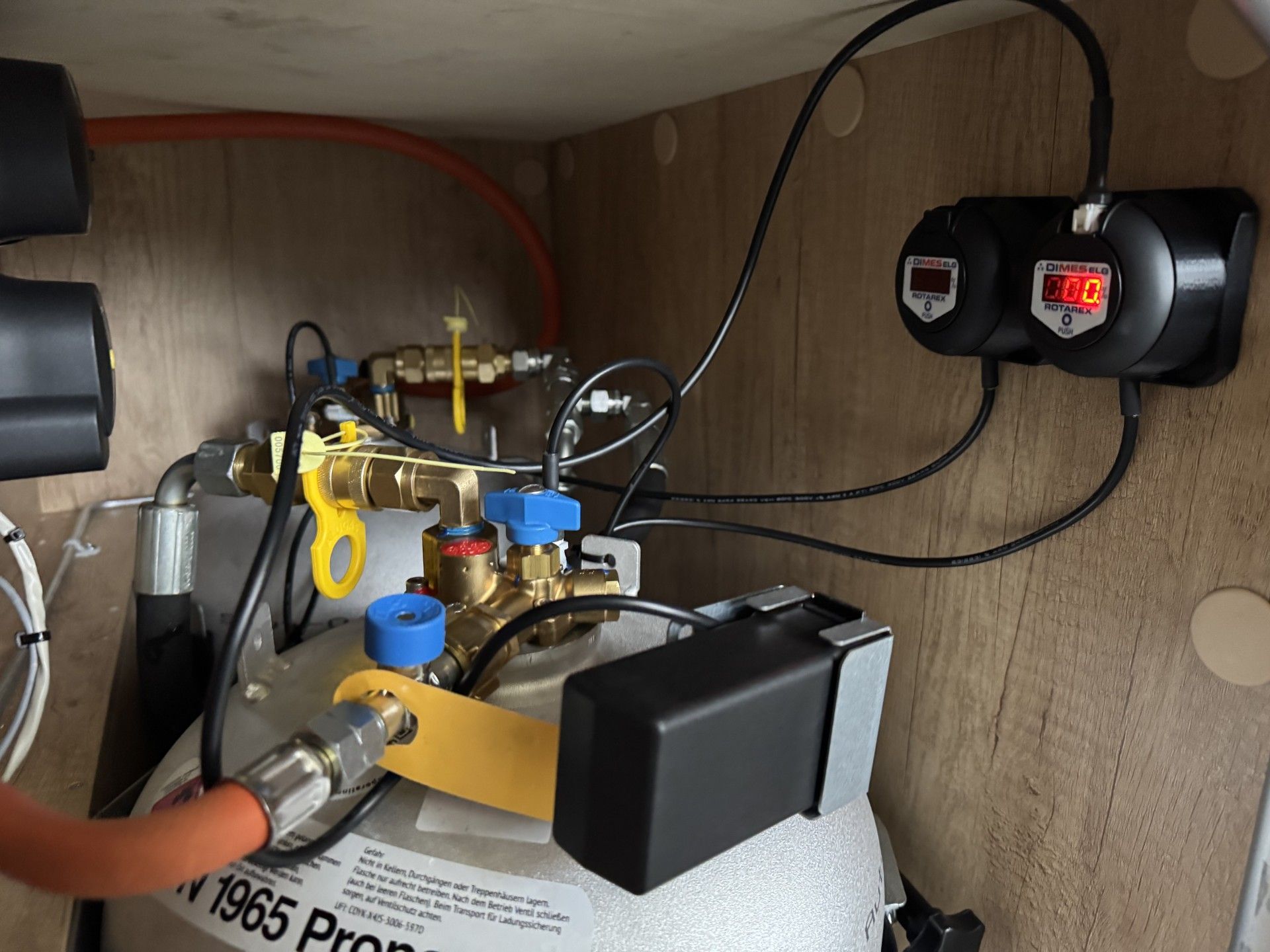 Dieser Hymer B 510 wurde mit zwei TRAVEL Mate 2.0 inklusive elektronischem Füllstandsdsiplay ausgestattet. Für eine noch komfortablerer Füllstands Überwachung verfügen bei Travel Mate über die Bluetooth Box von Rotarex Dimes. Zusätzlich wurde trotz des engen Gaskasten eine DuoControl mit Crash Sensor inkl. Filter von Truma verbaut