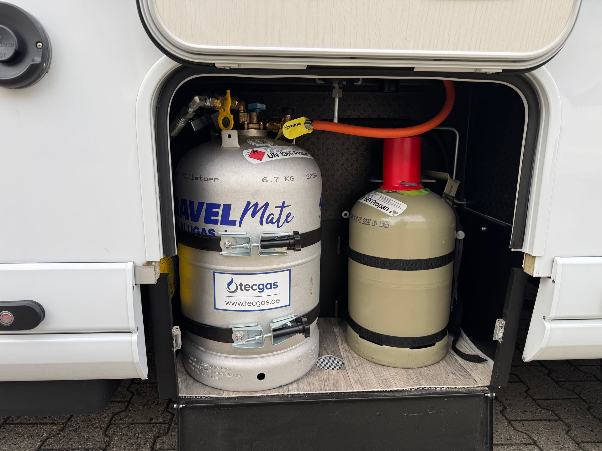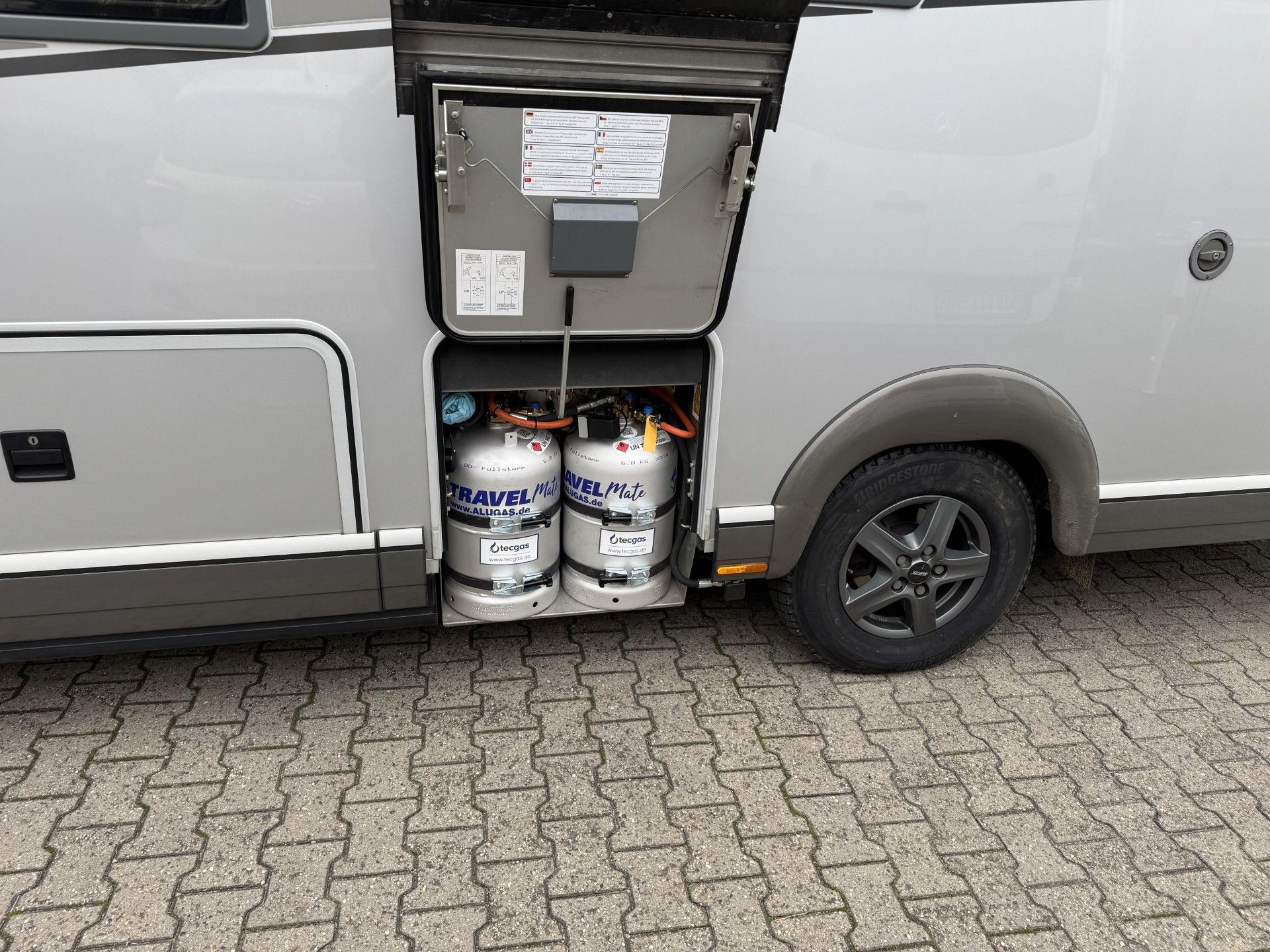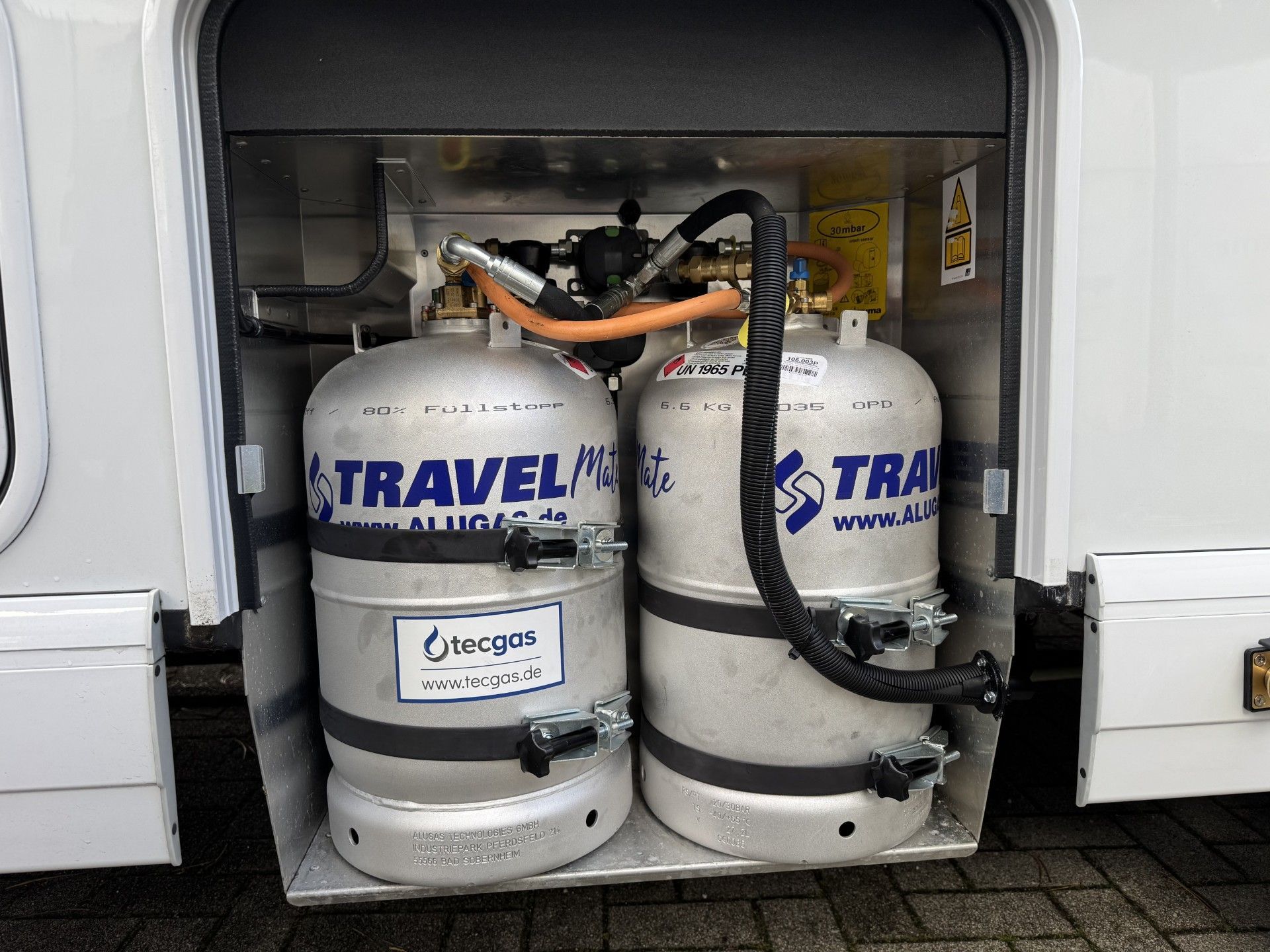 In diesem Malibu I 490 LE vollintegrierten Wohnmobil haben wir zwei Alugas TRAVEL Mate 1.0 installiert. Dadurch ergibt sich ein nutzbares Gasvolumen von insgesamt 43,4 Litern.