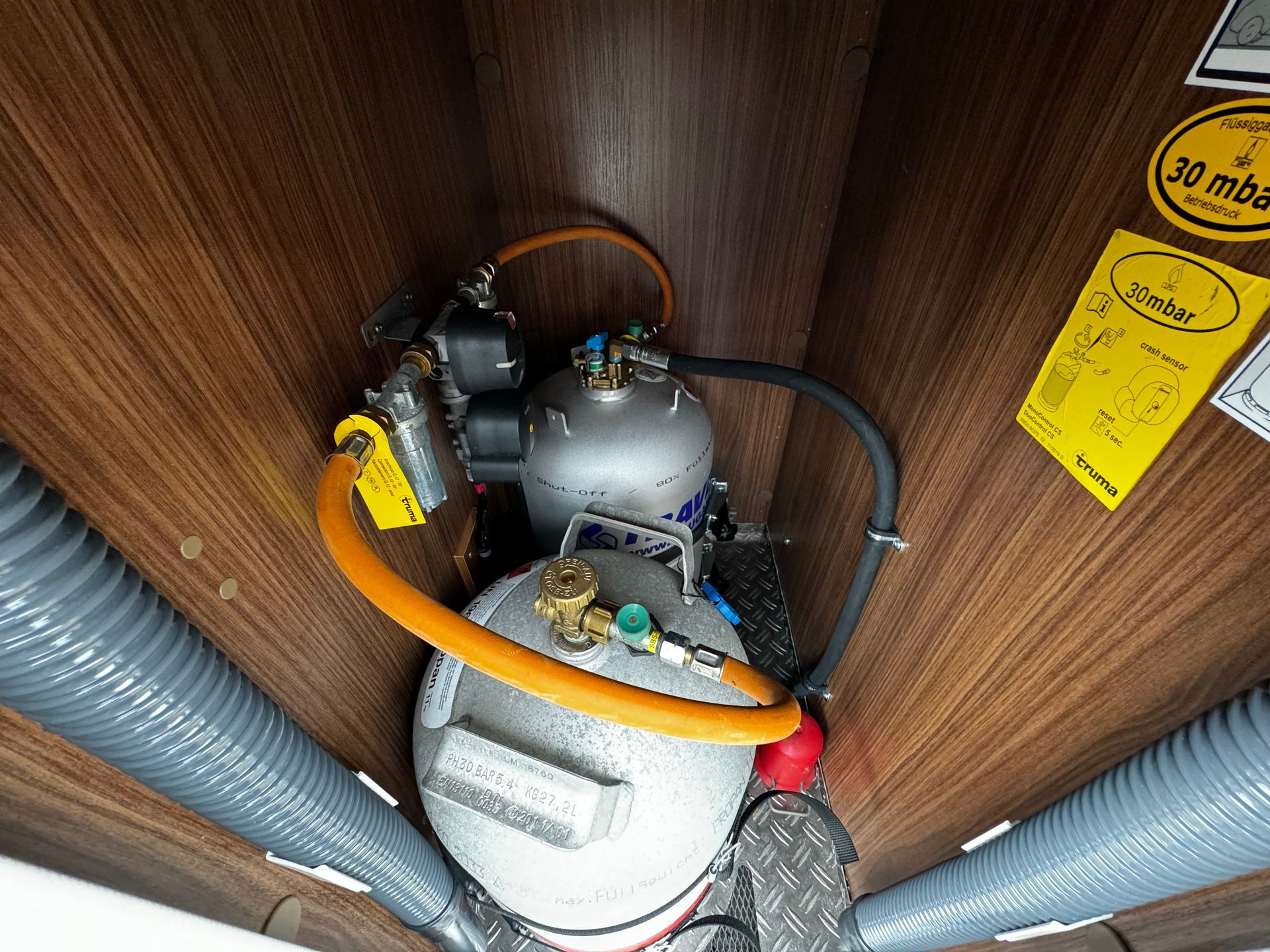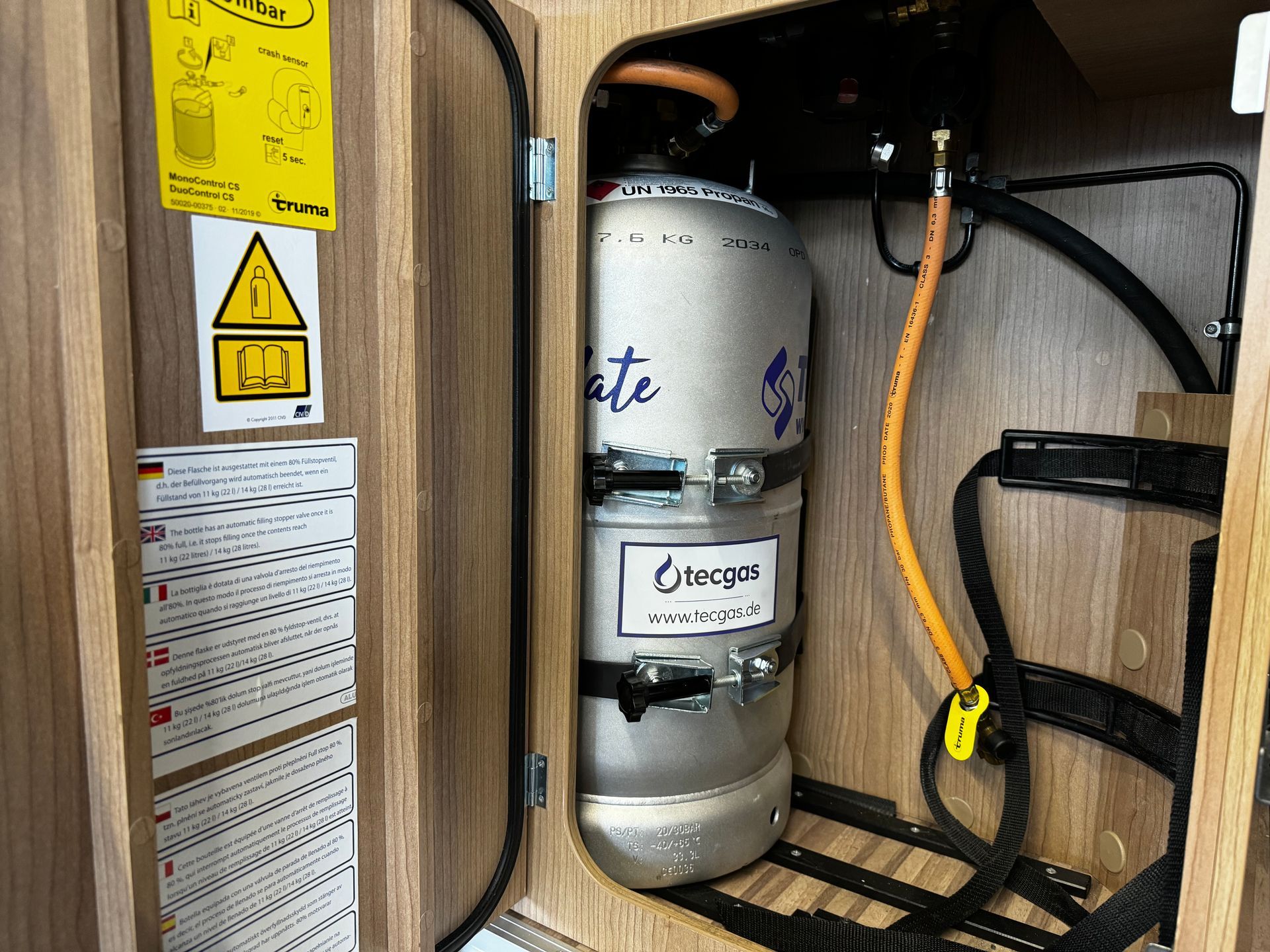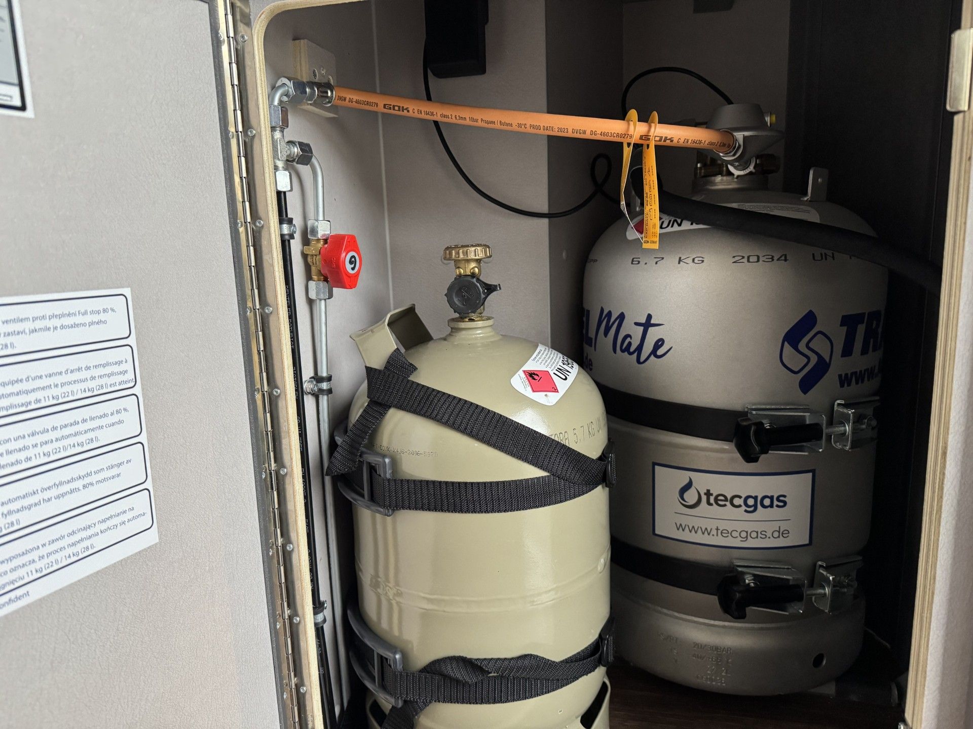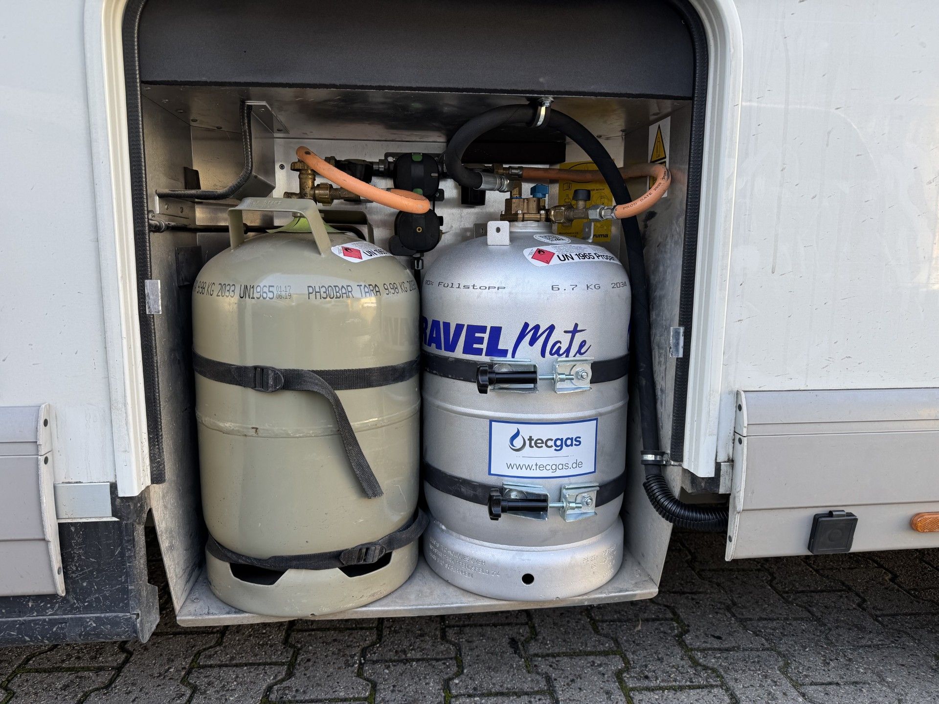 In diesem Malibu I 490 LE vollintegrierten Wohnmobil haben wir zwei Alugas TRAVEL Mate 1.0 installiert. Dadurch ergibt sich ein nutzbares Gasvolumen von insgesamt 43,4 Litern.