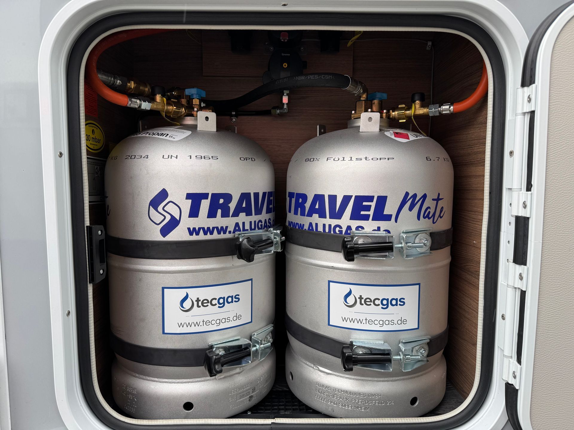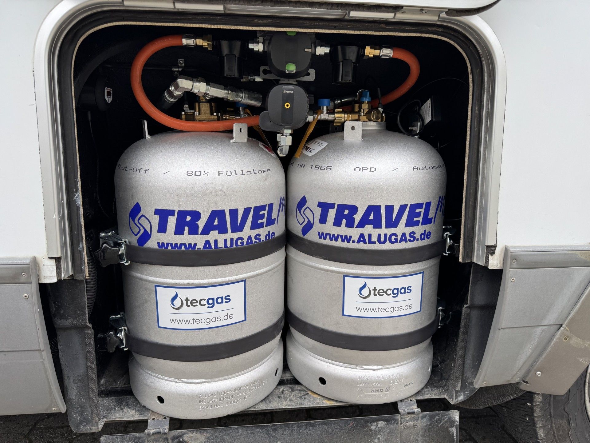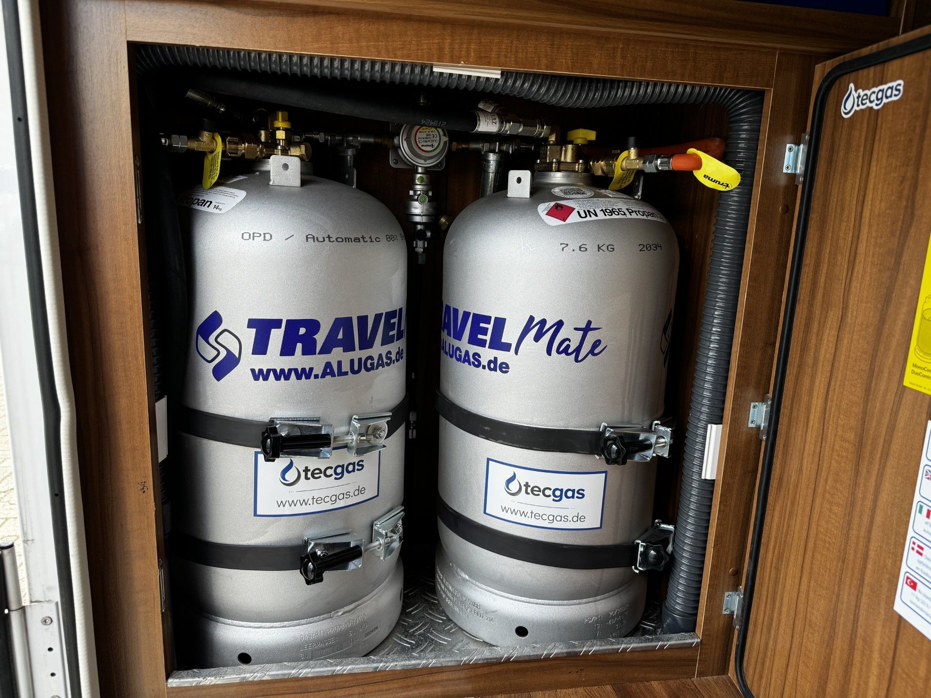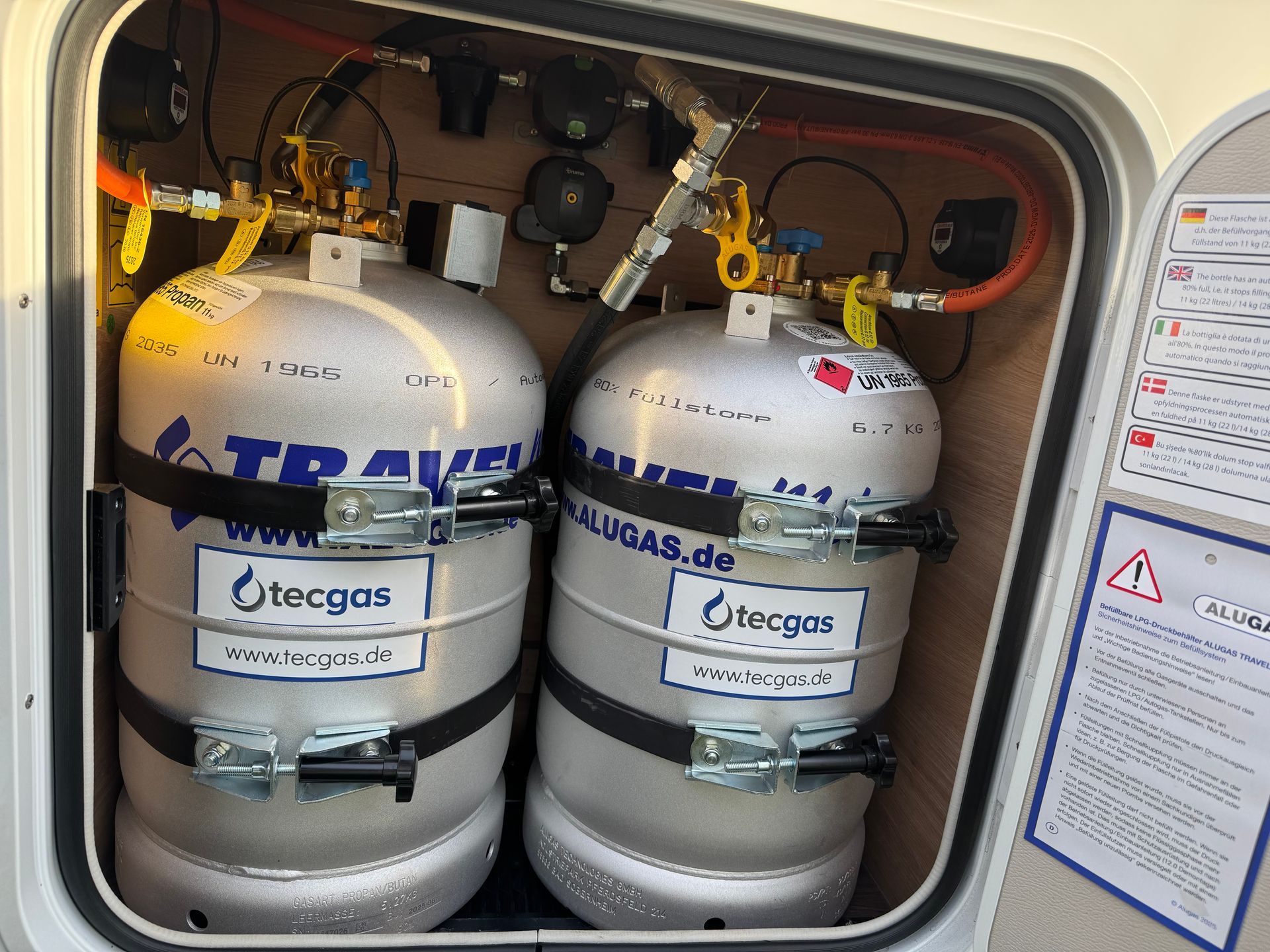 Zwei Alugas TRAVEL Mate mit Brutto je 27,2 Liter wurden an die vorhandene DuoControl angeschlossen.