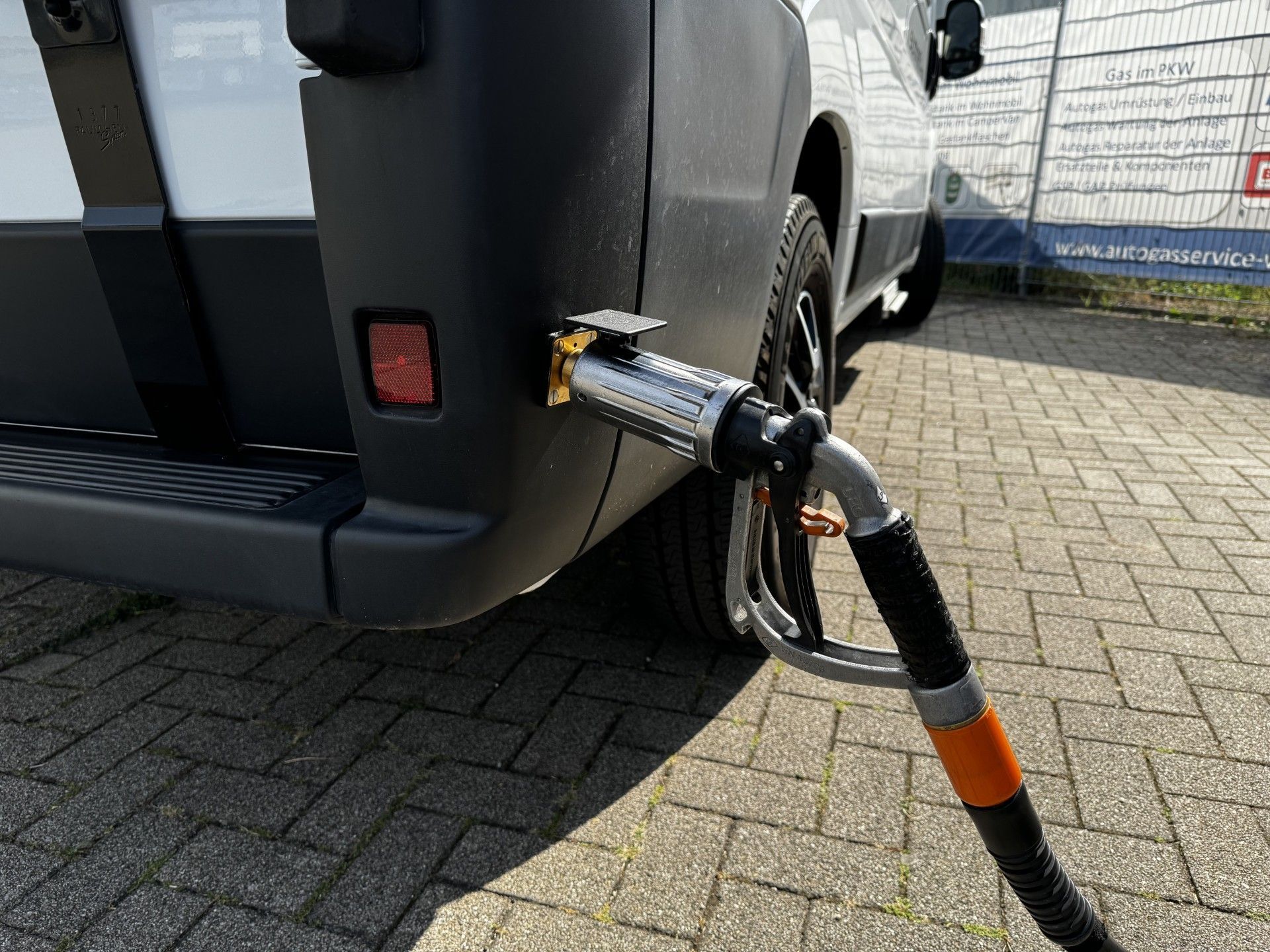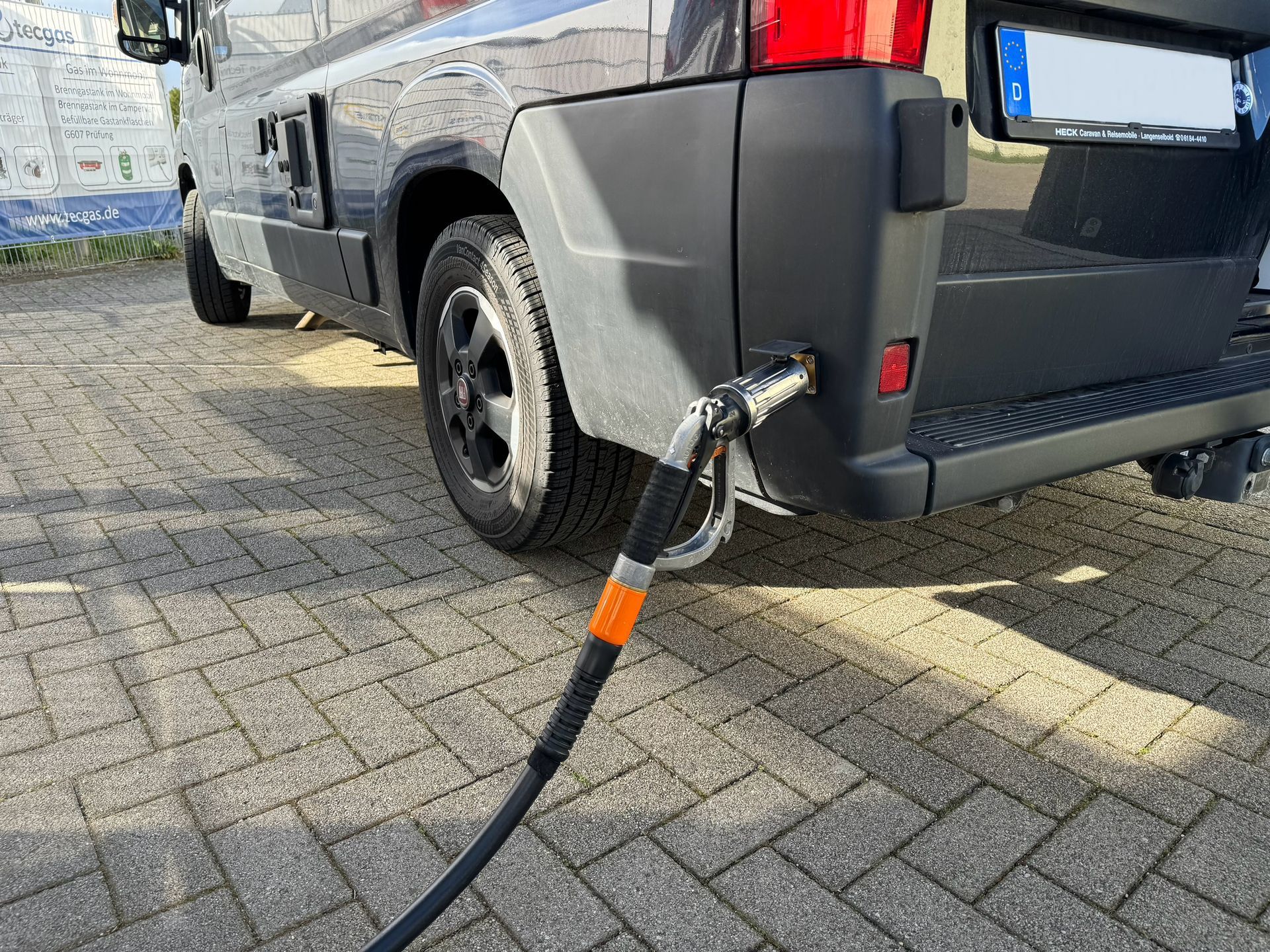 ausgestattet. Der nutzbare Gasvorrat von 43,4 Liter wird bequen ab der LPG Tankstelle aufgefüllt. Um die Vorteile einer zwei Flaschenanlage voll auszunutzen wurde zusaätzlich eine