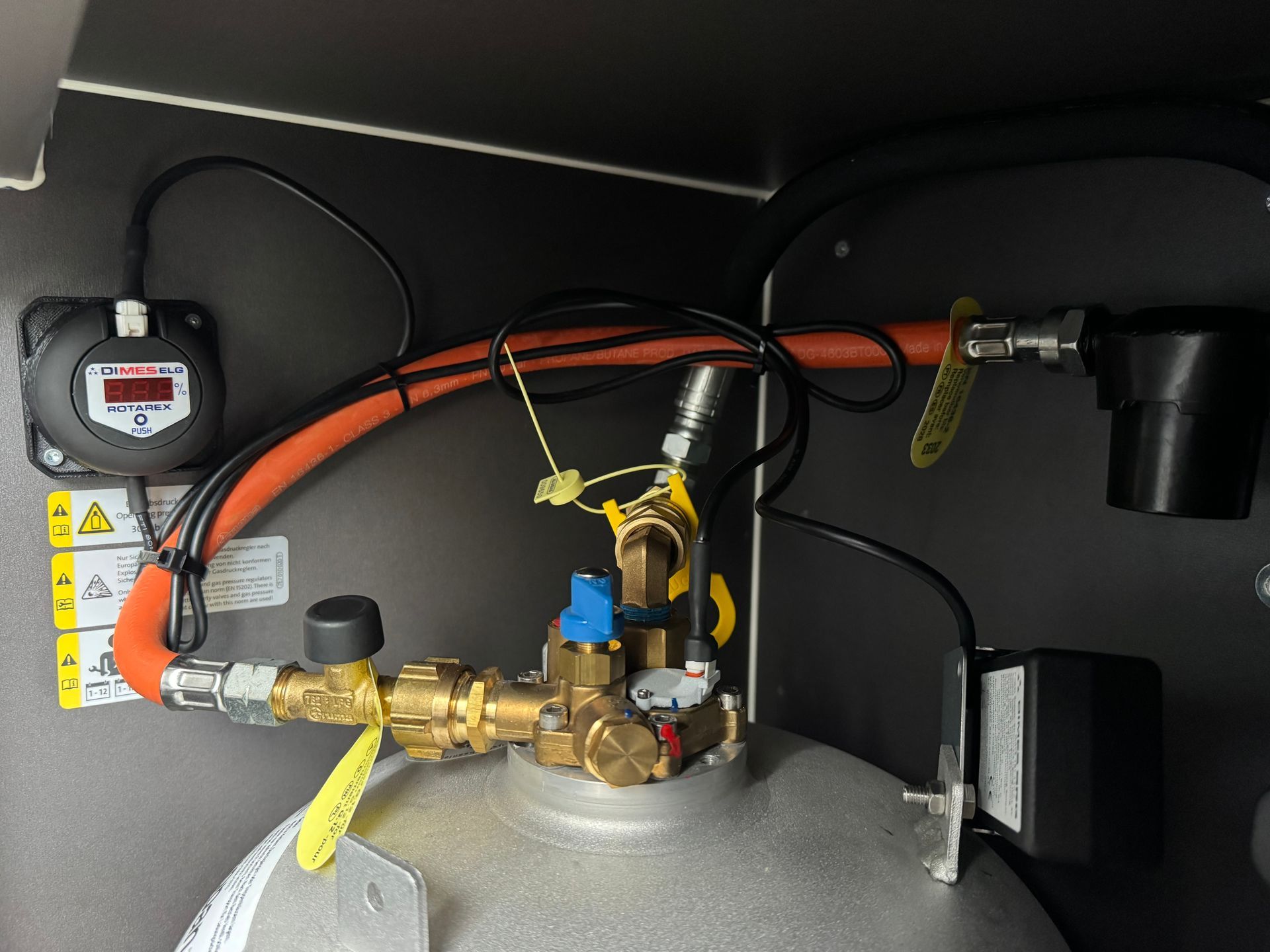 Alle Komponenten des Alugas Systemes, Befüllung, TRAVEL Mate, ELG Display, Bluetooth Modul kompakt im Bereich des Gaskasten installiert.