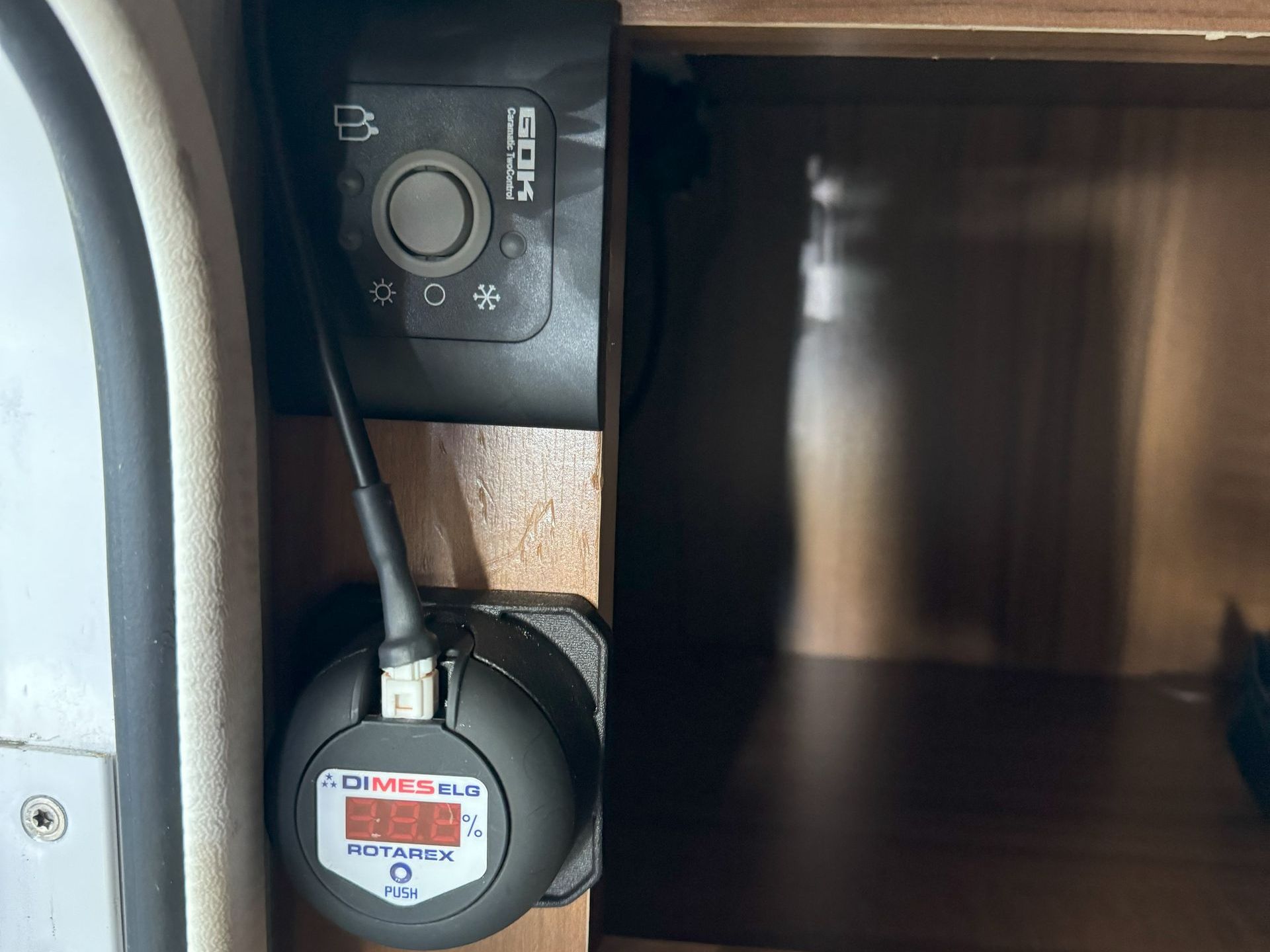 Das Füllstandsdisplay wurde gemeines mit dem WAVE Bluetooth Modul auf der Rückseite des Gaskasten in der Heckgarage verbaut.
