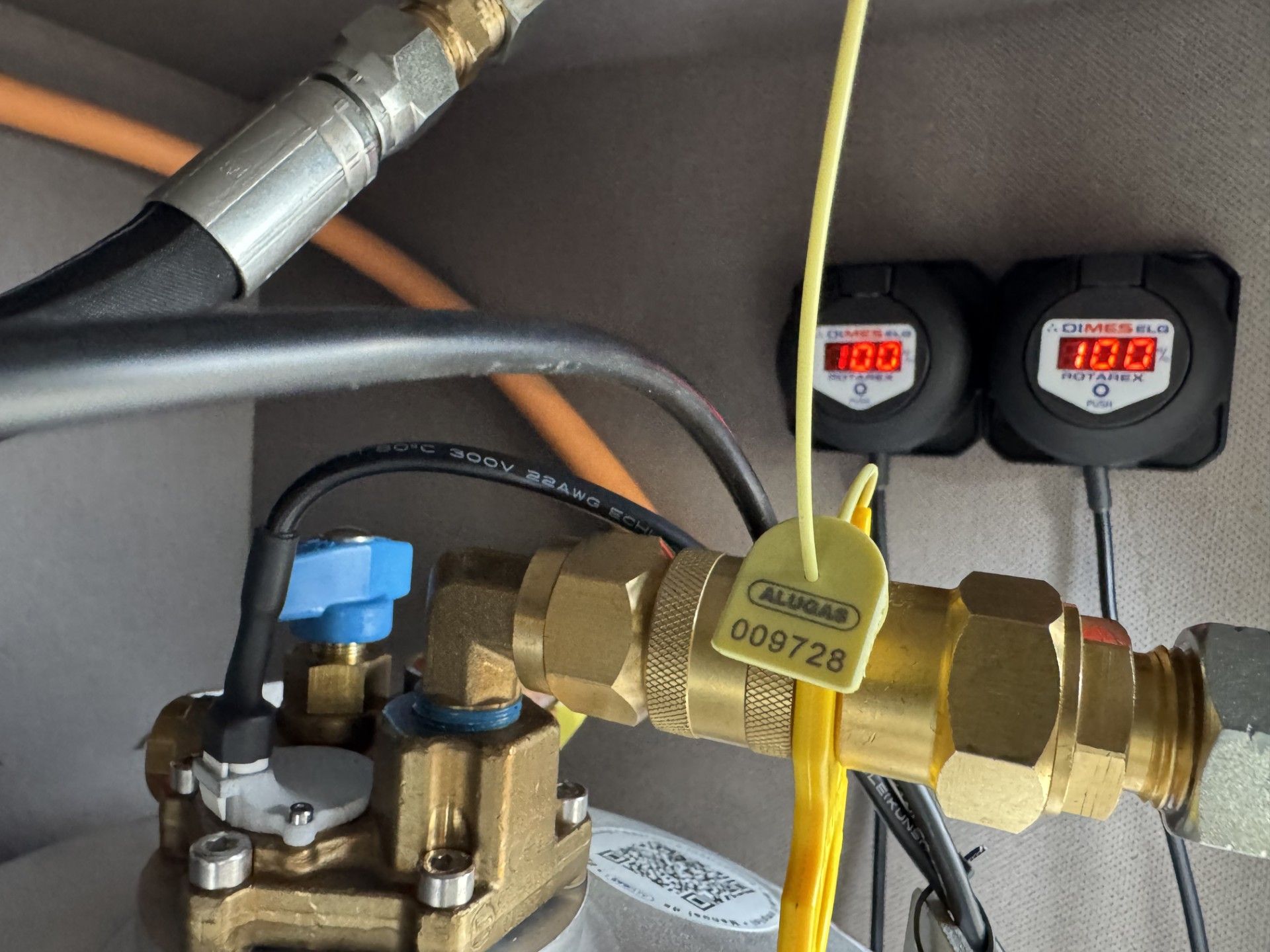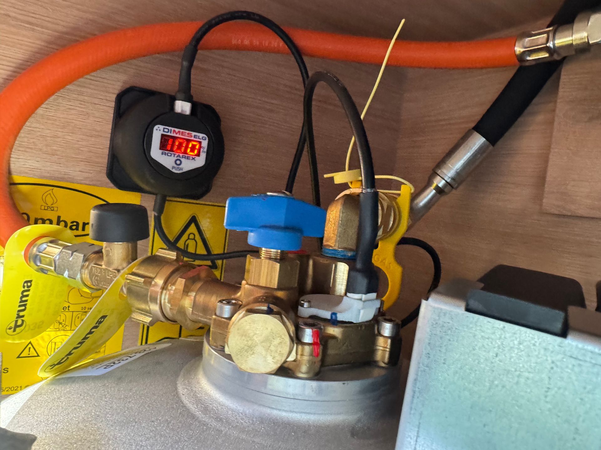 Hier ist das ELG Füllstandsdisplay, sowieh die Alugas Schnellkupplung zu sehen.