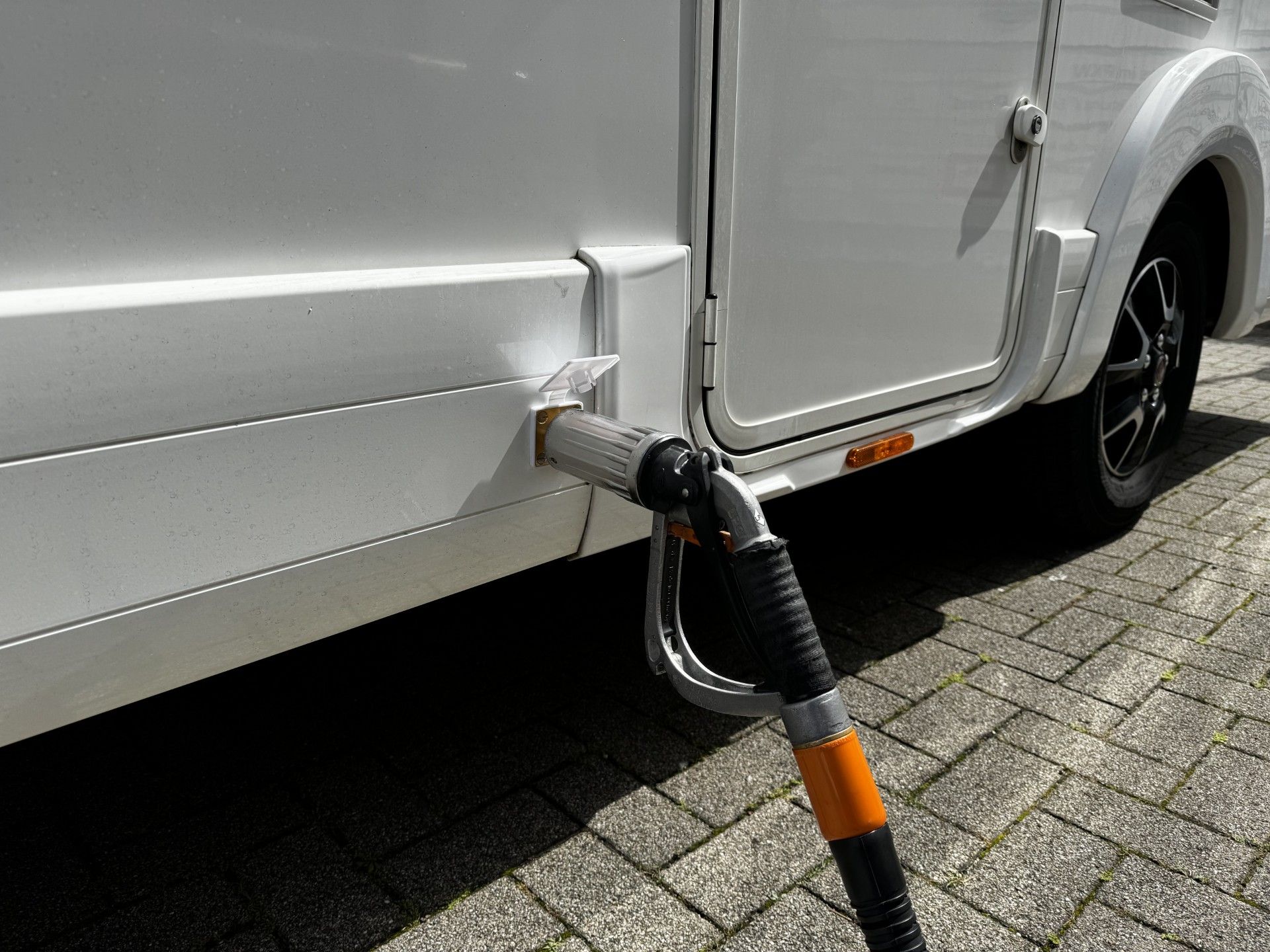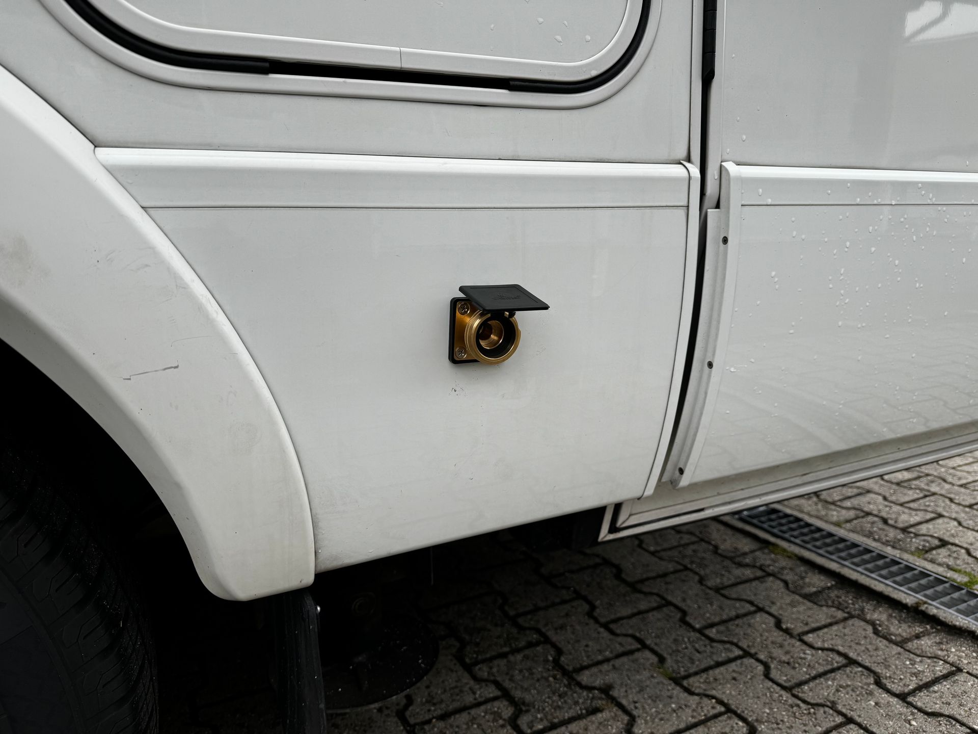 Betankungsventil rechts vom Gaskasten in der Bodenschürze verbaut.
