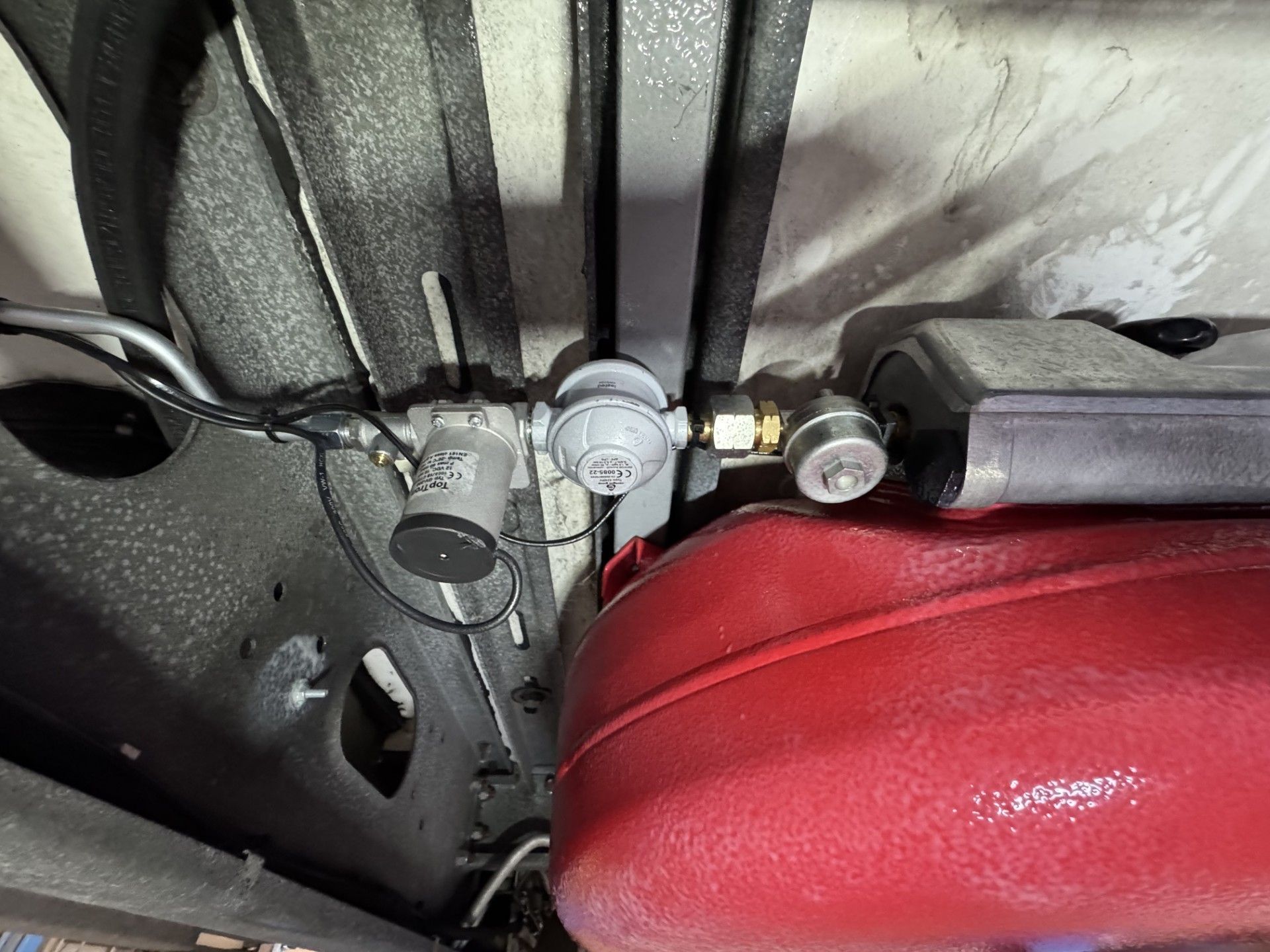 Dieses Vollintegrierte Wohnmobil von Giottiline basiert auf dem FIAT Fahrgestellt, somit konnte ein 70 Liter Tank mit dem AST Tankhalter verwendet werden. Der Füllstand wird über der Rotarex Dimes Tankanzeige über die Handy App gepüft. Um auch im Winter der Gastank uneingeschränkt zu nutzen wurde ein Eis-Ex am Druckregler verbaut.