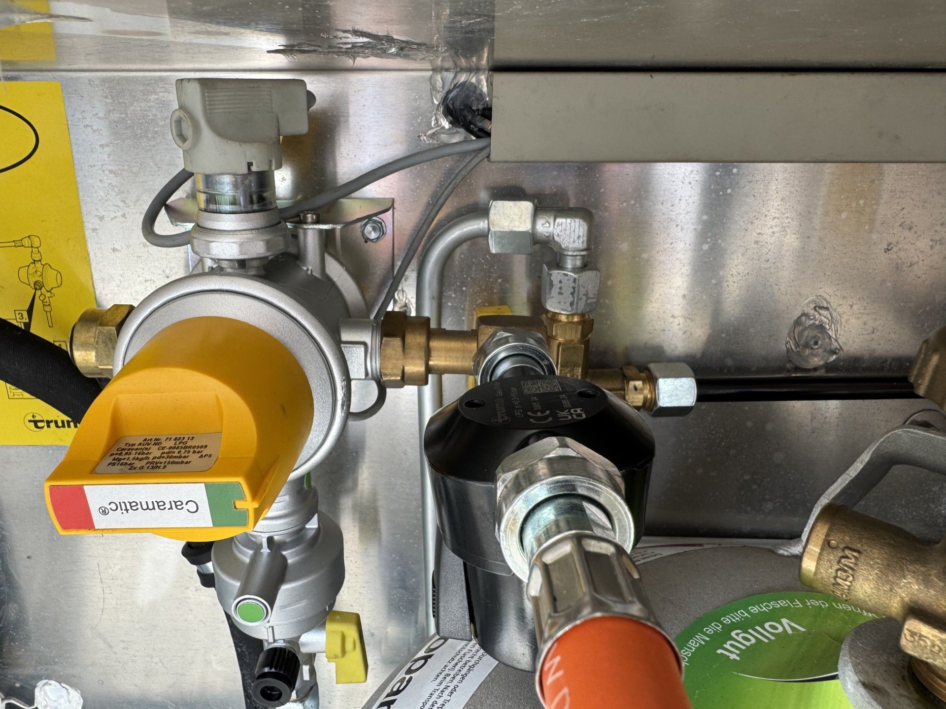 Am Gastank muss ein Druckminderer direkt angeschlossen werden, von dem eine feste Verrohrung abgeht. Hochdruckschläuche sind nicht erlaubt. Bestehende Druckregler wie Mono- oder Duo-Control können nicht verwendet werden.