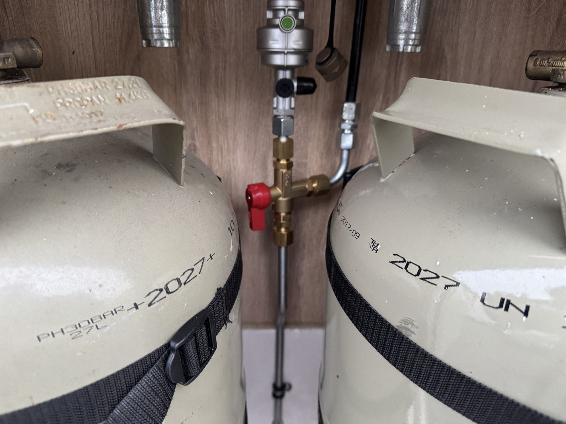 Dieser Weinsberg CaraCompact in der Pepper Edition wurde mit einem 70 Liter Unterflur Brenngastank ausgestattet. Um auch weiterhin den Gaskasten mit den Wechselflachen nutzen zu können wurde eine drei Wege Ventil um Umschalten zwischen Brenngastank und Wechselflaschen verbaut. Dies führt zu einer noch größeren Unabhängigkeit.