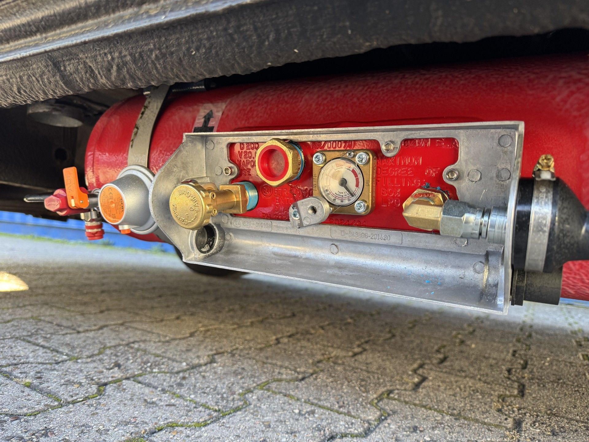 Der Tank besitzt einen kurzen Gasarmaturenkasten. Es wurde ein externes Betankungsventil neben Tank verbaut.