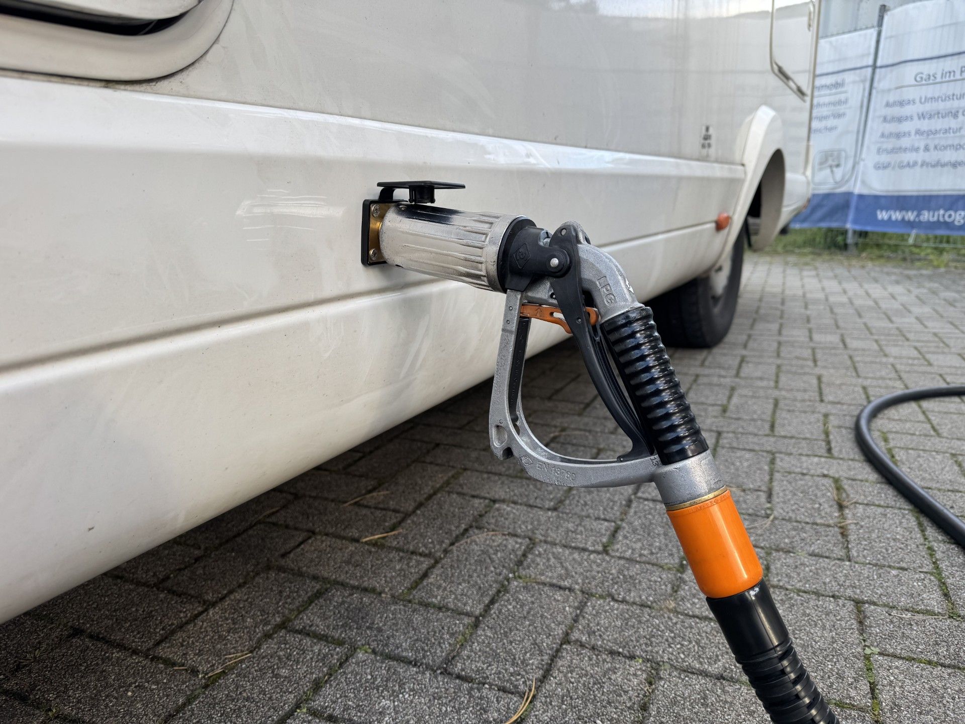 Über das Betankungsventil unter dem Gaskasten wird bequem der Gasvorrat von 43,4 Liter Autogas aufgefüllt.