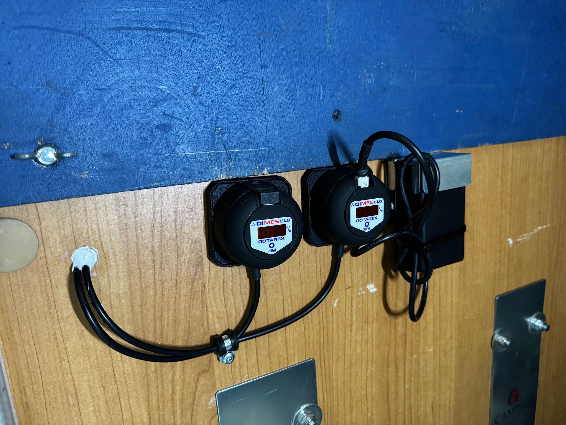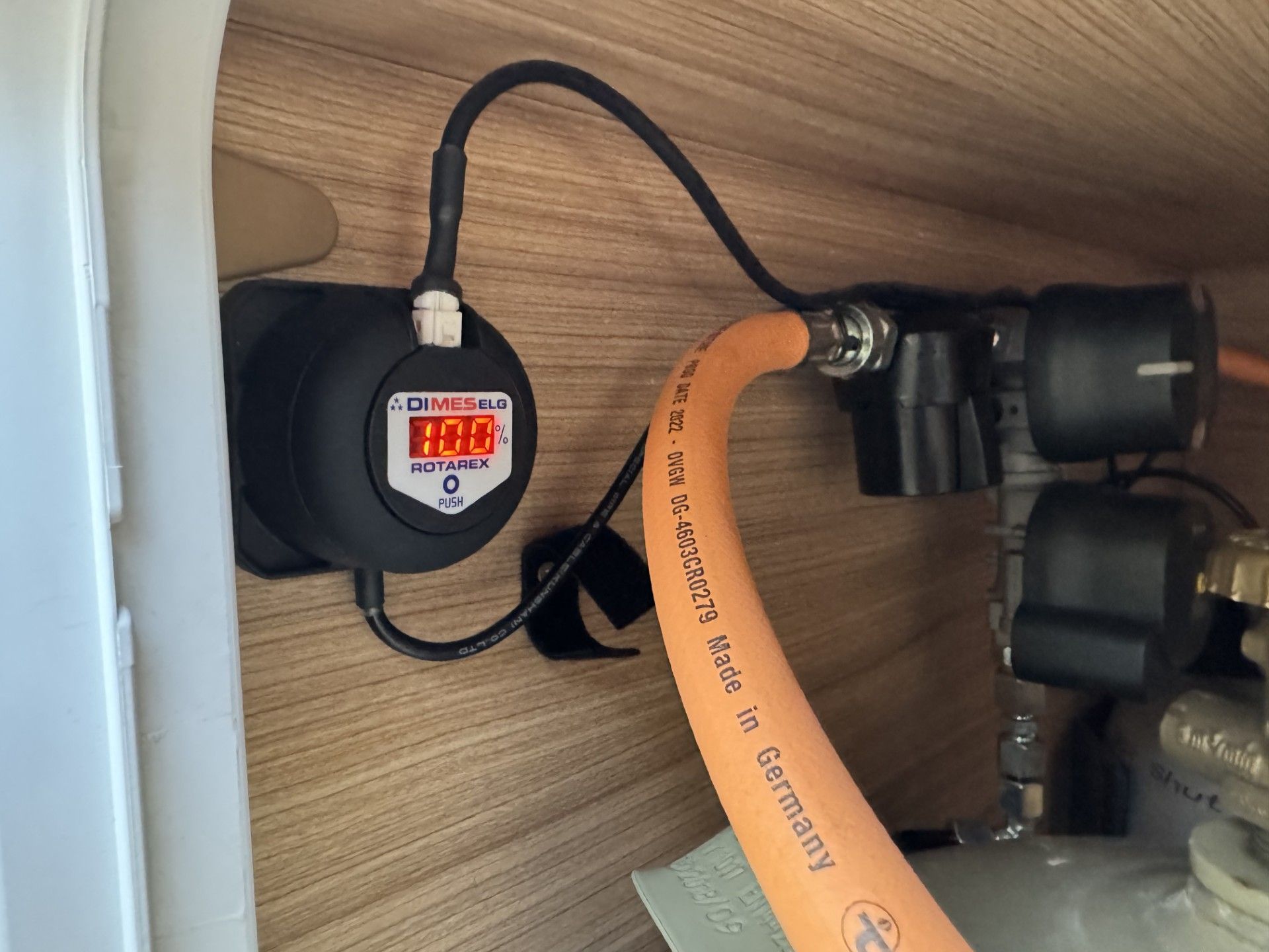 Zwei Alugas TRAVEL Mate 2.0 hintereinander im Gaskasten verbaut. Der Füllstand wird genau und komfortabel am ELG Display an der Seite des Gaskasten angezeigt.