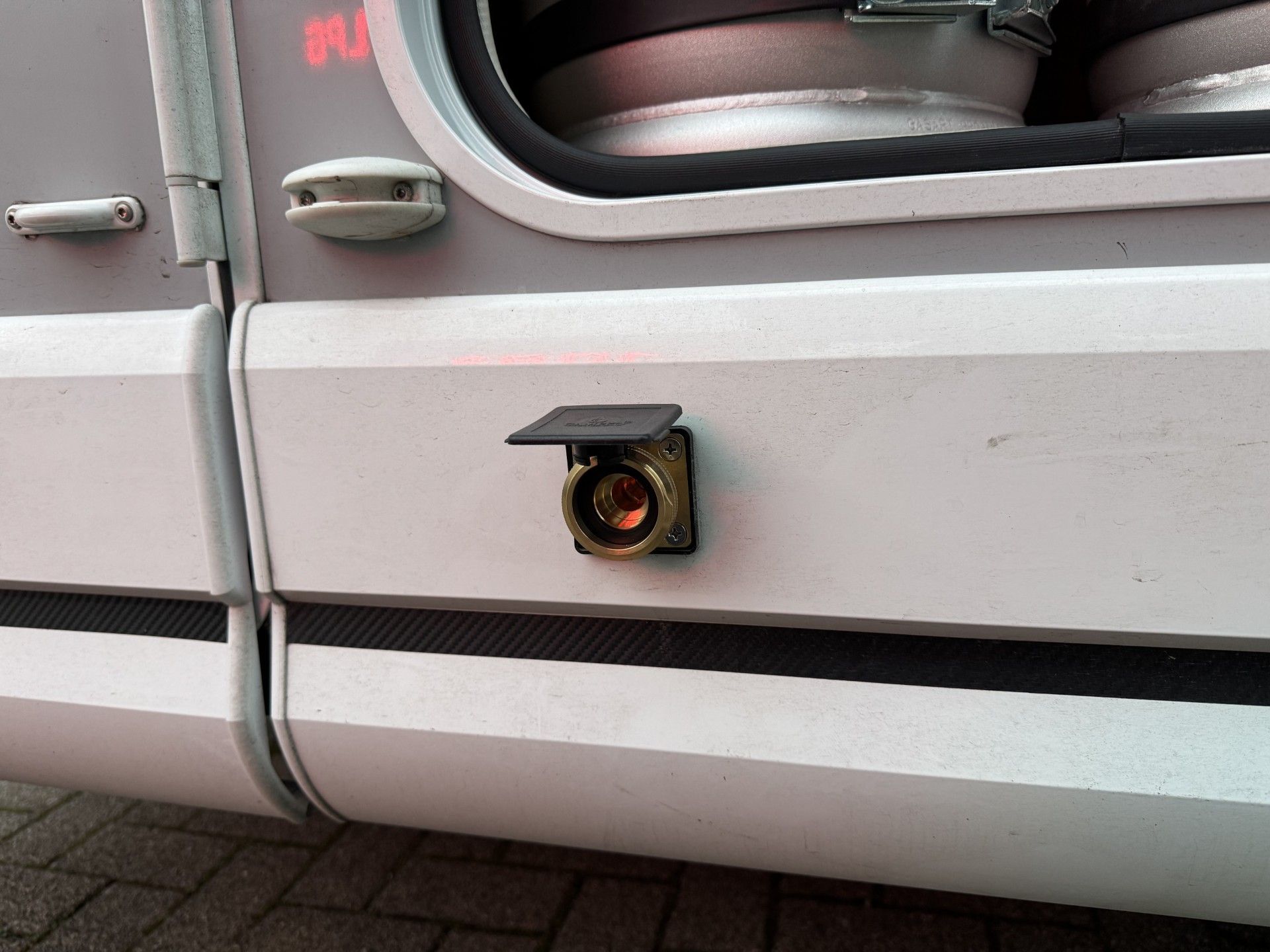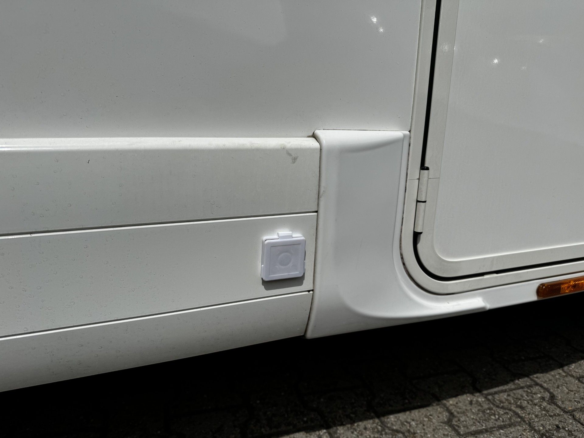 Das Außenbetankungsventil wurde an der oberen Ecke des Gasksten platziert. Mit der dezenten weißen Schutzkappe fällt es nicht weiter auf.