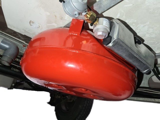 Dieses Vollintegrierte Wohnmobil von Giottiline basiert auf dem FIAT Fahrgestellt, somit konnte ein 70 Liter Tank mit dem AST Tankhalter verwendet werden. Der Füllstand wird über der Rotarex Dimes Tankanzeige über die Handy App gepüft. Um auch im Winter der Gastank uneingeschränkt zu nutzen wurde ein Eis-Ex am Druckregler verbaut.