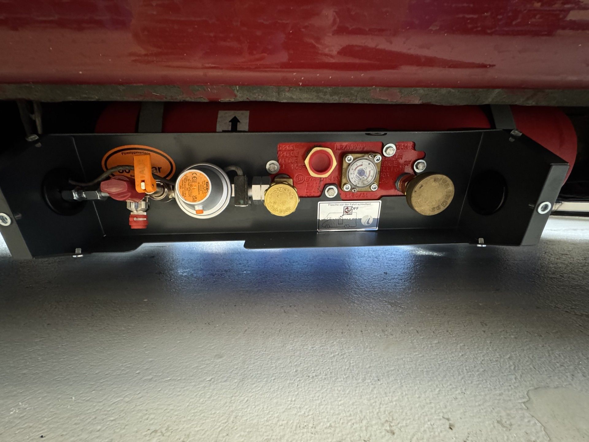 Der Tank wurde mit einem langen Gasarmaturenkasten ausgestattet, welcher sowohl die Tankarmaturen als auch den Druckminderer schützt. Die Betankung erfolgt direkt über das Füllventil im Tankkasten.